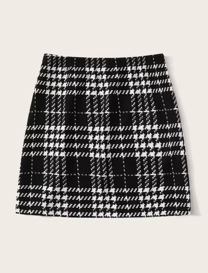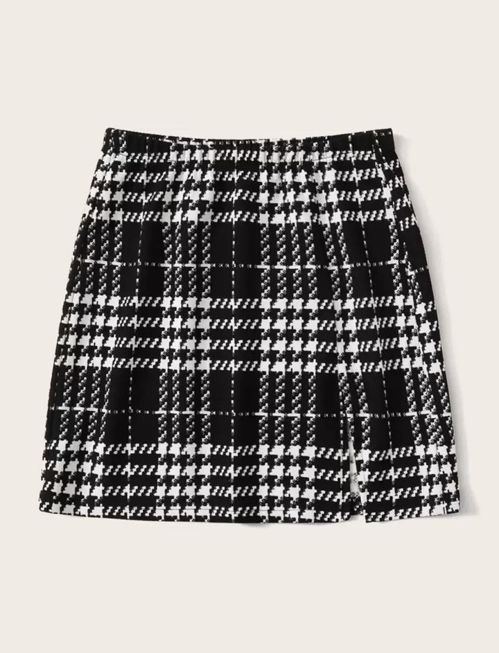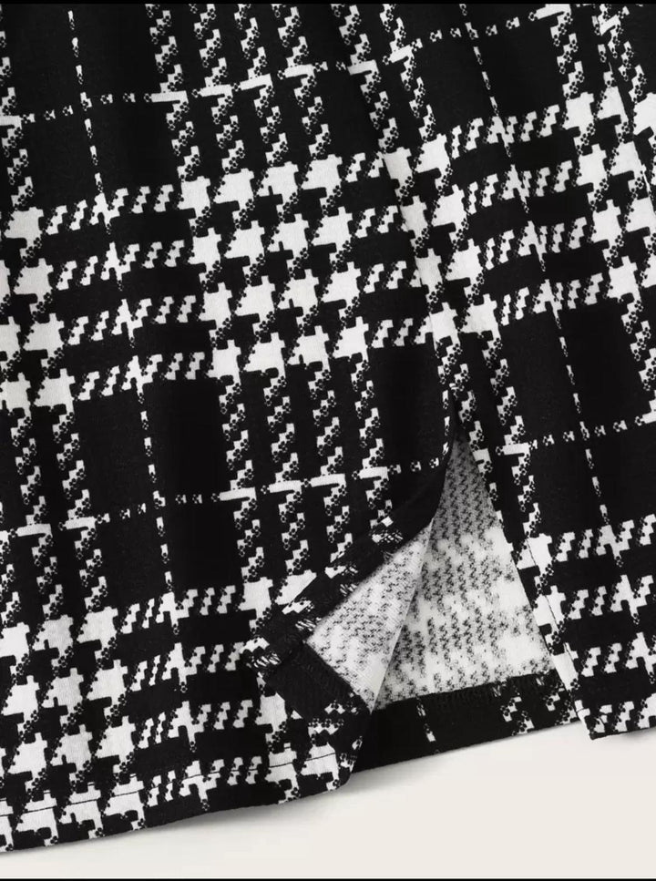 Pollera Corta minifalda Con Estampado Blanco y Negro y tajo
